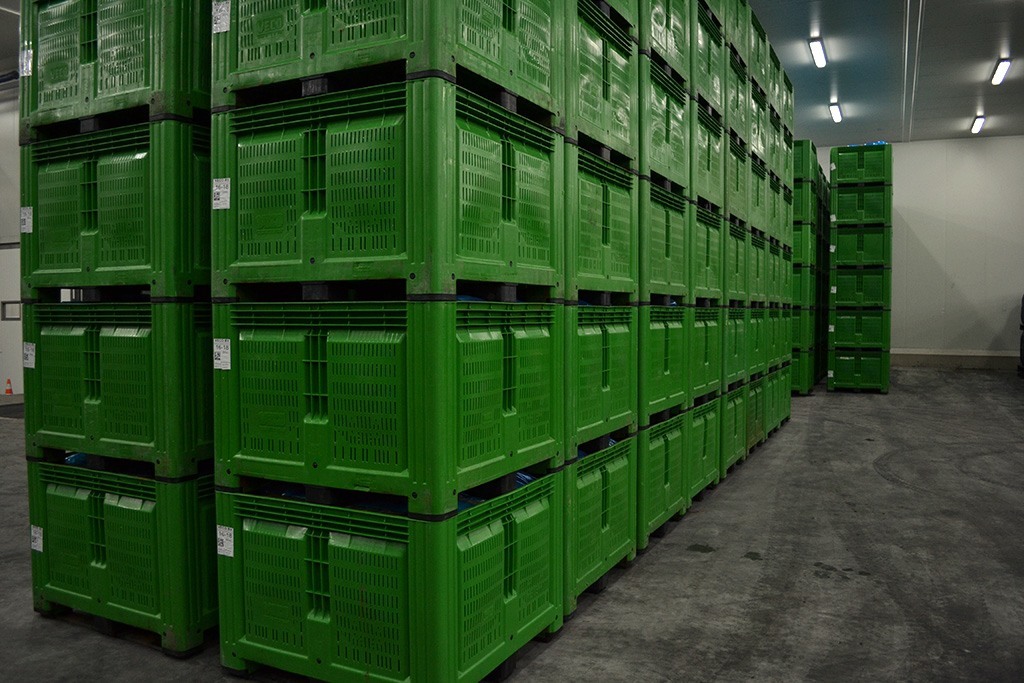 Devido ao crescimento da nossa empresa e o posterior processamento feito pelos nossos clientes surgiu a necessidade de um espaço de refrigeração. Em 1994 construímos o nosso primeiro armazém de refrigeração. A nossa capacidade total de refrigeração é de 61.000 caixotes de empilhamento. Armazenamos cebolinhas cristal frescas nesta câmara durante a colheita antes de serem transportadas e cebolinhas cristal em conserva que distribuímos posteriormente.