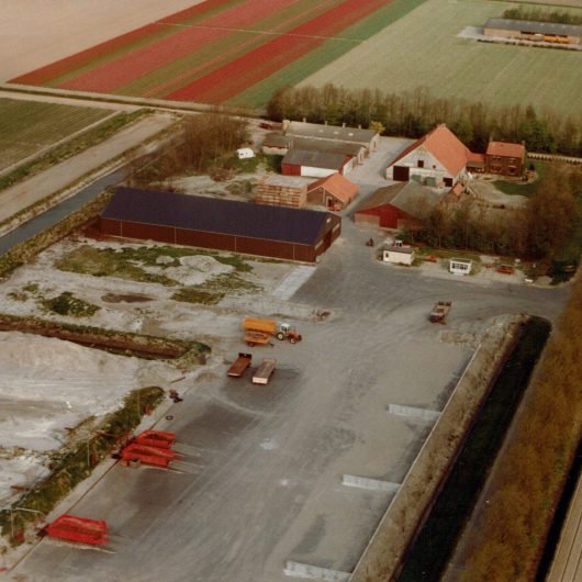 In 1938, the Dutch government started in the lake IJsselmeer with the laying of a dyke for the future North East Polder. After a period of two years pumping, the brand new polder was dry in 1942. It was then drained, sown with wheat and canals were dug in order to dry the land. In 1954, Jan Veendrick, the father of Hans, Jos and Frans, came from Gelderland near Arnhem to lease a farm. He traded his farm there and got a mixed farm of 24 acres in the polder. He started early 60s with the growing of bulbs, including tulips and gladioli.